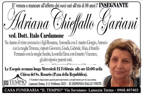 Le Esequie avranno luogo Mercoledì 12 Febbraio alle ore 15:00 nella