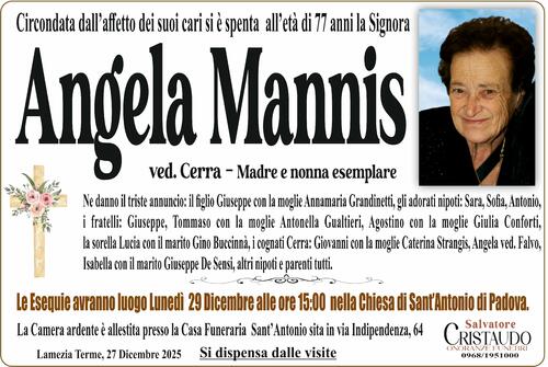 Le Esequie avranno luogo Lunedì 29 Dicembre alle ore 15:00 nella Chiesa di Sant’Antonio di Padova.