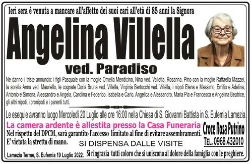 Ne danno il triste annuncio: i figli Pasquale con la moglie Ornella Mendicino, Nina ved. Valletta, Rosanna, Pino con la moglie Raffaella Mazzei, la sorella Anna ved. Mauriello, le cognate Doria Bruna ved. Villella, Virginia Bertocchi ved. Villella, i nipoti Elena e Massimo, Emilio e Adelina, Antonio e Simona, Alessandro e Angela, Carolina e Federico, Isabella e Carlo, Angelica e Alessandro, Maria Pia e Francesca e Angelina Beatrice, gli altri nipoti, i pronipoti e i parenti tutti.