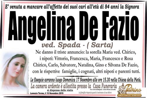 Le Esequie avranno luogo Domenica 17 Novembre alle ore 15.30 nella Chiesa della Pietà .