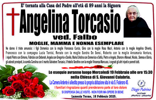Ne danno il triste annuncio: i figli Domenico con la moglie Francesca Curcio, Gino con la moglie Rosa Macrì, Antonio con la moglie Angelina Oliverio, Francesco con la compagna Lucia Torrisi, Renato con la moglie Sandra De Sensi, Roberto con la moglie Annamaria Ventura, i nipoti Pietro con Simona, Fabrizio con Deborah, Angela con Gregorio e Danilo, Maria Cristina con Domenico e Sofia, Pietro e Angela, Sharon e Manuel, Nicola , Serena e Gloria, gli adorati pronipoti, la sorella Carolina con il marito Salvatore Torcasio, il fratello Serafino con la moglie Vincenza Mancuso, i cognati gli altri nipoti e parenti tutti.