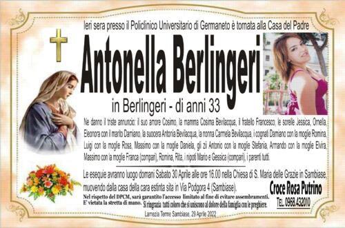 Ne danno il triste annuncio: il suo amore Cosimo, la mamma Cosima Bevilacqua, il fratello Francesco, le sorelle Jessica, Ornella, Eleonora con il marito Damiano, la suocera Antonia Bevilacqua, la nonna Carmela Bevilacqua, i cognati Damiano con la moglie Romina, Luigi con la moglie Rosa, Massimo con la moglie Daniela, gli zii Antonio con la moglie Stefania, Armando con la moglie Elvira, Massimo con la moglie Franca (compari), Romina, Rita, i nipoti Mario e Gessica (compari), i parenti tutti.