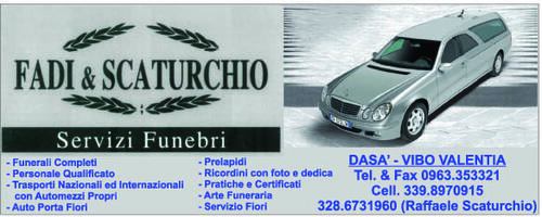 Le esequie avranno luogo Domenica 09 luglio, alle ore 17.30, nella chiesa di Santa Maria dei Latini in Acquaro.
