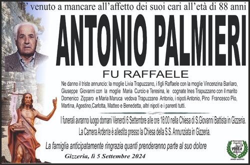 I funerali avranno luogo domani Venerdì 6 Settembre alle ore 16:00 nella Chiesa di S.Giovanni Battista in Gizzeria.