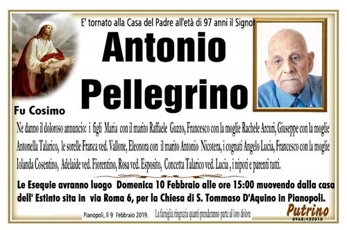 Pianopoli, lì 9 Febbraio 2019. O.F. PUTRINO 0968/432010