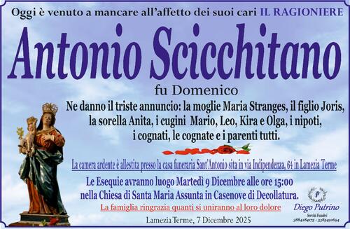 Le Esequie avranno luogo Martedì 9 Dicembre alle ore 15:00