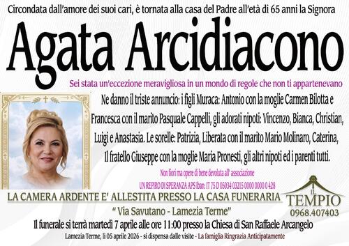 Lamezia Terme, lì 05 aprile 2026 - si dispensa dalle visite - La famiglia Ringrazia Anticipatamente