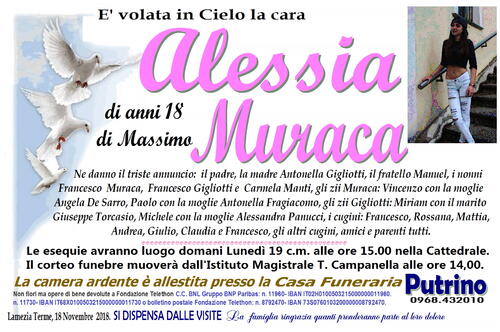 Il corteo funebre muoverà dall'Istituto Magistrale T. Campanella alle ore 14,00.