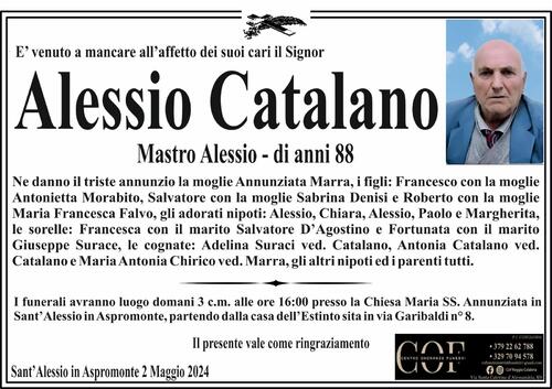 Ne danno il triste annunzio la moglie Annunziata Marra, i figli: Francesco con la moglie Antonietta Morabito, Salvatore con la moglie Sabrina Denisi e Roberto con la moglie Maria Francesca Falvo, gli adorati nipoti: Alessio, Chiara, Alessio, Paolo e Margherita, le sorelle: Francesca con il marito Salvatore D'Agostino e Fortunata con il marito Giuseppe Surace, le cognate: Adelina Suraci ved. Catalano, Antonia Catalano ved.
