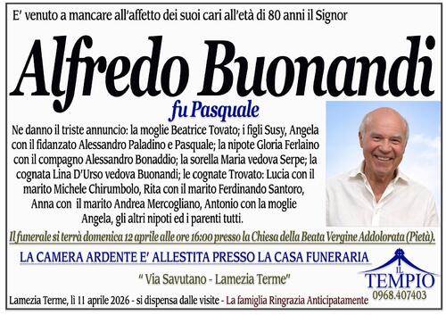 Lamezia Terme, lì 11 aprile 2026 - si dispensa dalle visite - La famiglia Ringrazia Anticipatamente