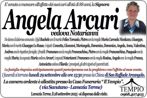 La camera ardente è allestita presso la Casa Funeraria “ Il Tempio”. -( via Savutano - Lamezia Terme)
