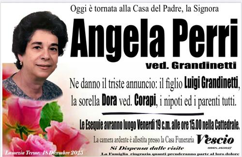 Ne danno il triste annuncio: il figlio Luigi Grandinetti, la sorella Dora ved. Corapi, i nipoti ed i parenti tutti.