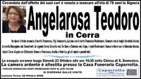 Ne danno il triste annuncio: il marito Francesco, i figli Annamaria, Luciana con il marito Francesco Mastroianni, Gennaro con la moglie Donatella Aloisio,la sorella Giuseppina ved. Grandinetti, le cognate Cerra: Concetta ved. De Sensi e Caterina ved. Volpe, i nipoti Mastroianni: Samuel e Kevin con la fidanzata Alessia, i nipoti Cerra: Angela con il fidanzato Simone e Francesca, Amelia e Federica, gli alti nipoti e parenti tutti.