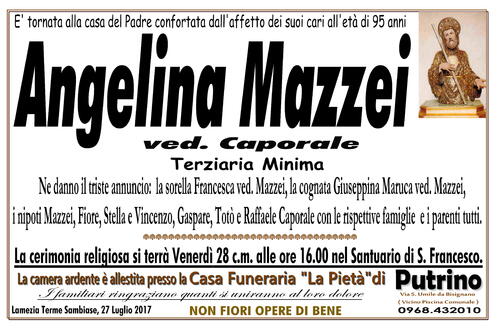 i nipoti Mazzei, Fiore, Stella e Vincenzo, Gaspare, Totò e Raffaele Caporale con le rispettive famiglie e i parenti tutti.