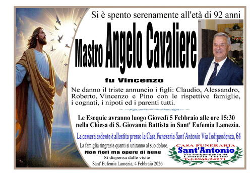 Ne danno il triste annuncio i figli: Claudio, Alessandro, Roberto, Vincenzo e Pino con le rispettive famiglie,i cognati, i nipoti ed i parenti tutti.