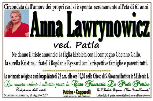 Circondata dall'amore dei propri cari si è spenta serenamente all'età di 61 anni