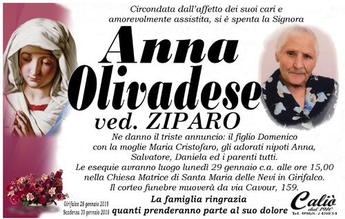 Le esequie avranno luogo lunedì 29 gennaio c.a. alle ore 15,00