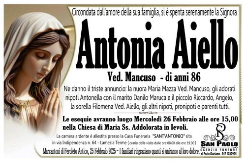 Ne danno il triste annuncio: la nuora Maria Mazza Ved. Mancuso, gli adorati