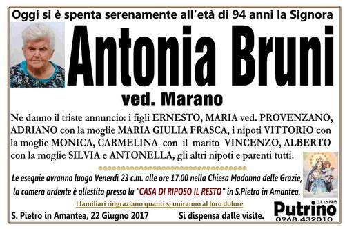 S. Pietro in Amantea, 22 Giugno 2017 Si dispensa dalle visite.