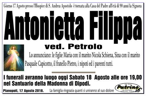 I funerali avranno luogo oggi Sabato 18 Agosto alle ore 19,00