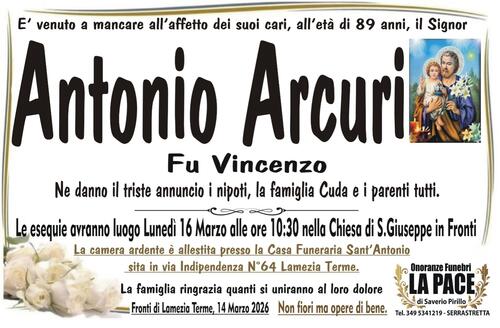 Le esequie avranno luogo Lunedì 16 Marzo alle ore 10:30 nella Chiesa di S.Giuseppe in Fronti.