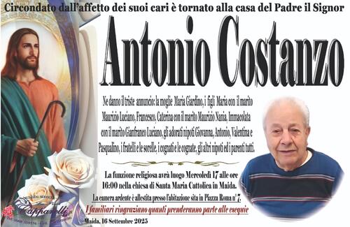 Ne danno il triste annuncio: la moglie Maria Giardino, i figli Maria con il marito