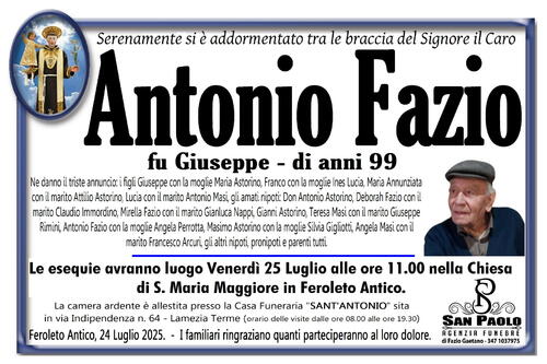 Feroleto Antico, 24 Luglio 2025. - I familiari ringraziano quanti parteciperanno al loro dolore.