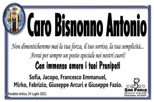 Le esequie avranno luogo Venerdì 25 Luglio alle ore 11.00 nella Chiesa
