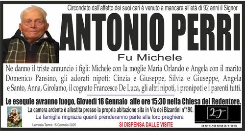 Ne danno il triste annuncio i figli: Michele con la moglie Maria Orlando e Angela con il marito