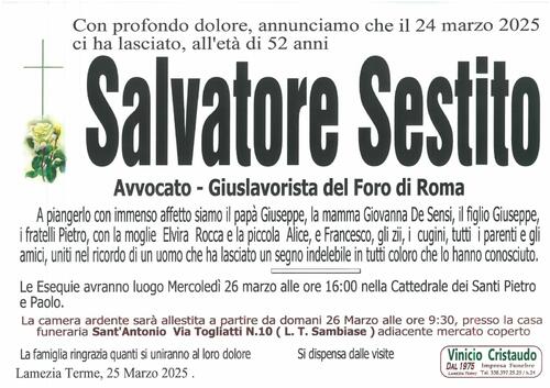 Con profondo dolore, annunciamo che il 24 marzo 2025 ci ha lasciato, all'età di 52 anni Vedi testo manifesto