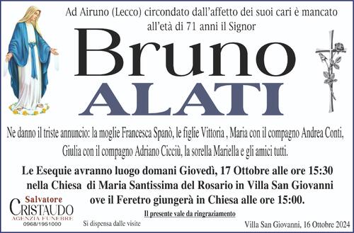 Le Esequie avranno luogo domani Giovedì, 17 Ottobre alle ore 15:30