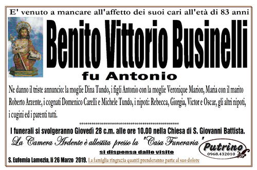 I funerali si svolgeranno Giovedì 28 c.m. alle ore 10.00 nella Chiesa di S. Giovanni Battista.