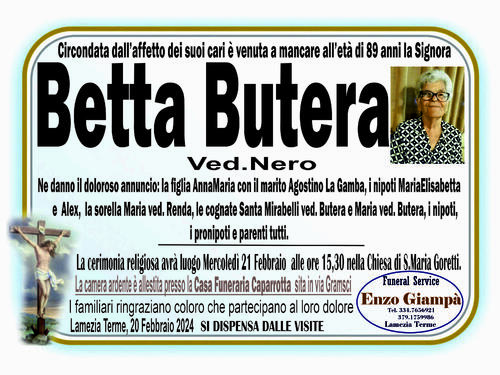 La camera ardente è allestita presso la Casa Funeraria Caparrotta sita in via Gramsci