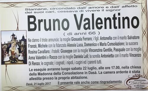 Le esequie avranno luogo sabato 22 luglio, alle ore 17.00, nella chiesa della Madonna della Consolazione in Dasà . La camera ardente è stata allestita presso la propria abitazione sita in Dasà alla Via Martiri di via Fani.