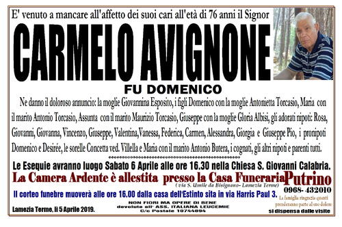 Lamezia Terme, lì 5 Aprile 2019. O.F. PUTRINO 0968/432010