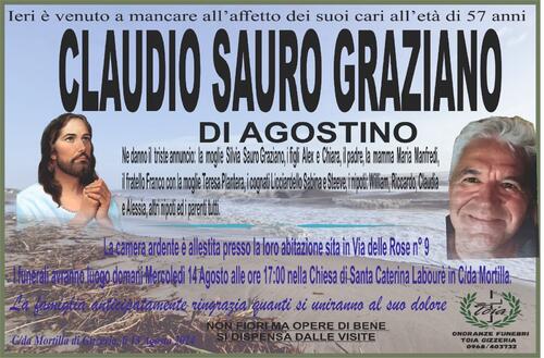 Ne danno il triste annuncio: la moglie Silvia Sauro Graziano, i figli Alex e Chiara, il padre, la mamma Maria Manfredi,