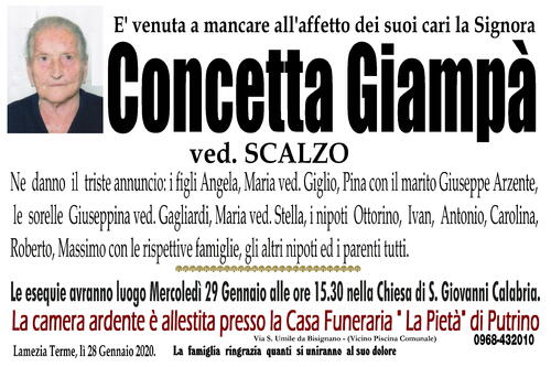 La camera ardente è allestita presso la Casa Funeraria '' La Pietà '' di Putrino