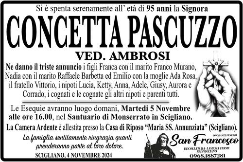 Ne danno il triste annuncio i figli Franca con il marito Franco Murano,