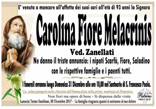 I funerali avranno luogo Domenica 31 Dicembre alle ore 10,00 nel Santuario di S. Francesco Paola.