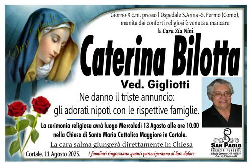 Giorno 9 c.m. presso l'ospedale S. Anna - S.Fermo (COMO), munita dai conforti religiosi è venuta a mancare la cara zia Ninì