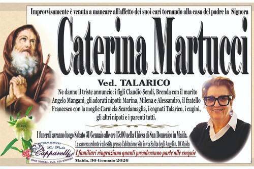 Ne danno il triste annuncio: i figli Claudio Sendi, Brenda con il marito angelo Mangani, gli adorati nipoti: Marina, Milena e Alessandro, il fratello Francesco con la moglie Carmela Scardamaglia, i cognati talarico, i cugini, gli altri nipoti e i parenti tutti