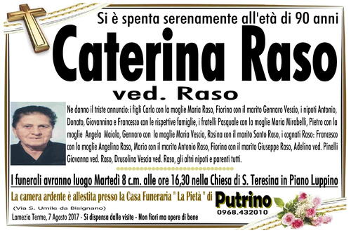 Giovanna ved. Raso, Drusolina Vescia ved. Raso, gli altri nipoti e parenti tutti.