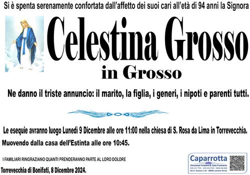 Le esequie avranno luogo Lunedì 9 Dicembre alle ore 11:00 nella Chiesa di S. Rosa da Lima in Torrevecchia.