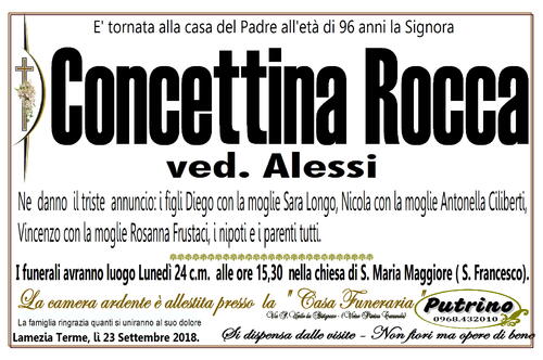 Lamezia Terme, lì 23 Settembre 2018. O.f. PUTRINO 0968-432010