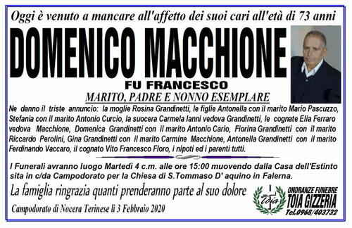 Ferdinando Vaccaro, il cognato Vito Francesco Floro, i nipoti ed i parenti tutti.