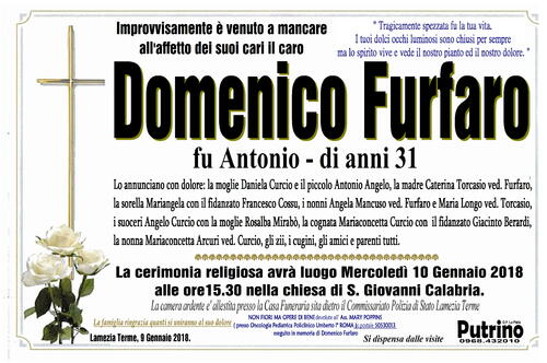 Lo annunciano con dolore: la moglie Daniela Curcio e il piccolo Antonio Angelo, la madre Caterina Torcasio ved. Furfaro,