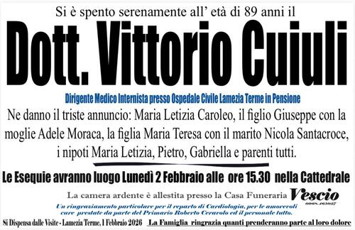 Le Esequie avranno luogo Lunedì 2 Febbraio alle ore 15.30 nella Cattedrale