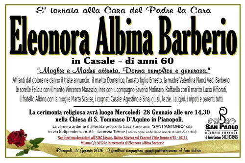 Milano C/c 307272 in memoria di Eleonora Albina Barberio