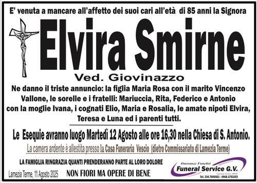 Le Esequie avranno luogo domani martedì 12 Agosto alle ore 16.30 nella chiesa di S. Antonio.