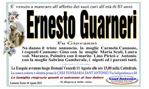 Ne danno il triste annuncio, la moglie Carmela Cannone, i cognati Cannone: Gino con la moglie Maria Scali, Laura ved. Marasco, Palmira con il marito Lino Piricò e Antonio con la moglie Sabrina Gamberale, i nipoti ed i parenti tutti.
